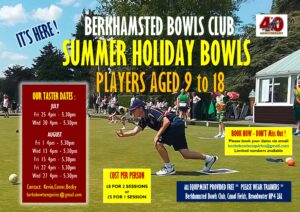 “Five years after giving bowls a try at Berkhamsted’s open day he set himself a goal to one day get to the national finals at Leamington! He’s only gone and done it!” she said with such joy. Keiran headied to Leamington on August 14thto play his quarter final, in which he was unfortunately defeated. Keiran is already a stalwart of Berkhamsted’s Men competition teams and is currently the Watford & District U18 champion.
