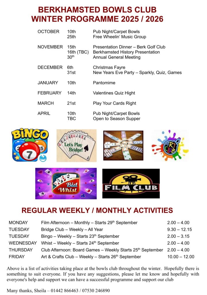 We are a community based bowls club in South West Hertfordshire following all Bowls England Safeguarding policies and also offering a year round Social programme.